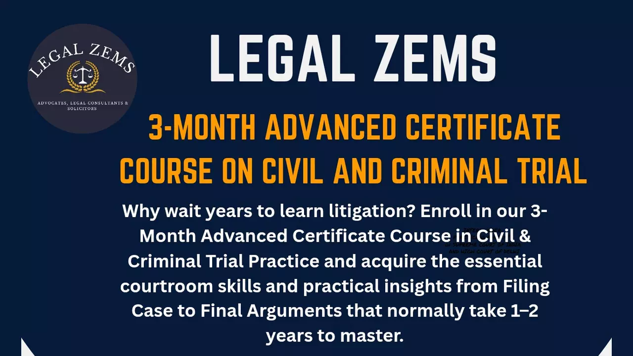 The Legal Zems Advanced Certificate Course in Civil Trial and Criminal Trial is designed to build advocacy-ready professionals by equipping learners with the practical skills required to independently handle civil suits and criminal proceedings. The programme prepares participants for successful careers in litigation law firms, corporate legal departments, and judicial services.