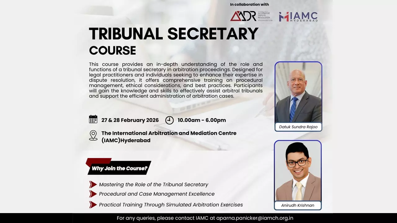 [Advertisement] Tribunal Secretary Course By IAMC Hyderabad and AIADR Malaysia