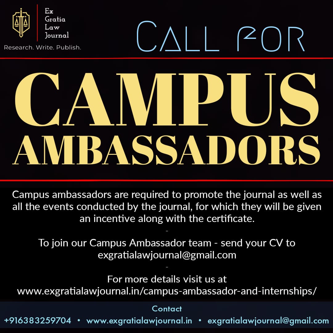Call For Role Of Campus Ambassador: Ex Gratia Law Journal