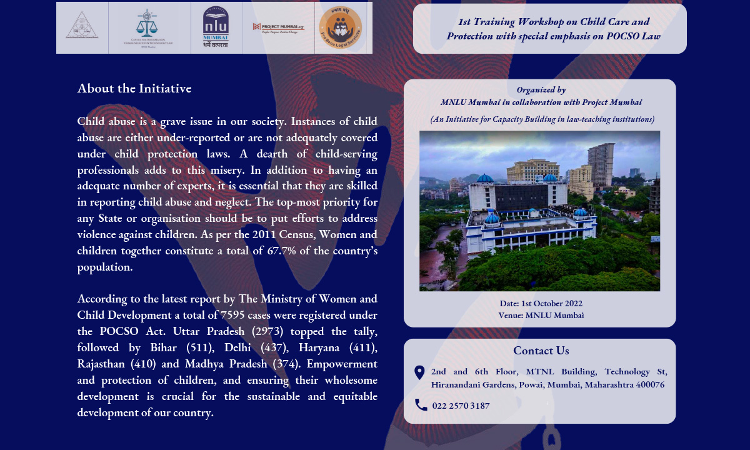 MNLU Mumbai: 1st Training Workshop On Child Care And Protection With Special Emphasis On POCSO Law