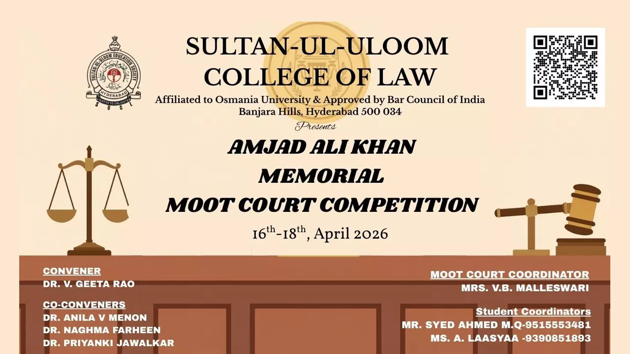 The Sultan-Ul-Uloom College of Law, Hyderabad, is organizing the Amjad Ali Khan Memorial Moot Court Competition 2026, a prestigious national-level moot court competition that brings together talented law students from institutions across India.