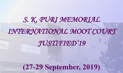 University of Delhi, Law Centre-II is organizing S. K. Puri Memorial International Moot Court Justified'19 to be held on 27th to 29th September 2019.