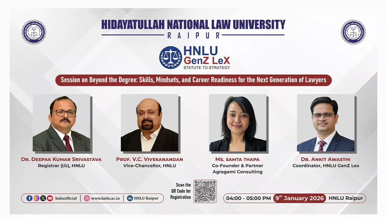 Hidayatullah National Law University (HNLU), Raipur, has launched “HNLU Gen Z–Lex”, a forward-looking digital platform aimed at bridging the long-felt gap between legal academia and professional practice. Conceived as a high-impact, regular engagement forum, the initiative seeks to move students seamlessly from statute to strategy, aligning classroom learning with the realities of contemporary legal practice.