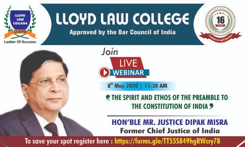 Lloyd Law College is organizing a webinar with Hon'ble Mr. Justice Dipak Misra.