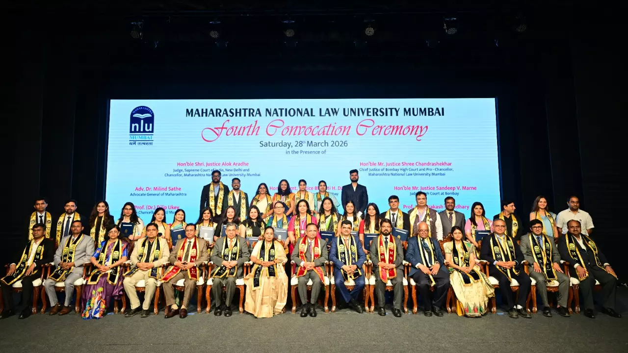 Maharashtra National Law University (MNLU), Mumbai celebrated its fourth convocation at Ravindra Natya Mandir, Prabhadevi, Mumbai. The ceremony commenced at 10:00 AM and brought together dignitaries, graduating students, faculty, and families to mark the conferral of degrees.