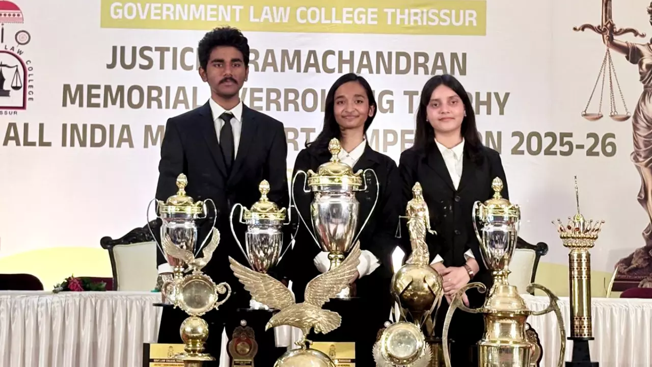 The National Law Institute University (NLIU), Bhopal, has announced that its team comprising Gauri Singh, S. R. Swami Meganathan, and Vaishnavi Tomar emerged as Winners of the XIV All India National Moot Court Competition, 2025-26, organized by Government Law College, Thrissur, Kerala.