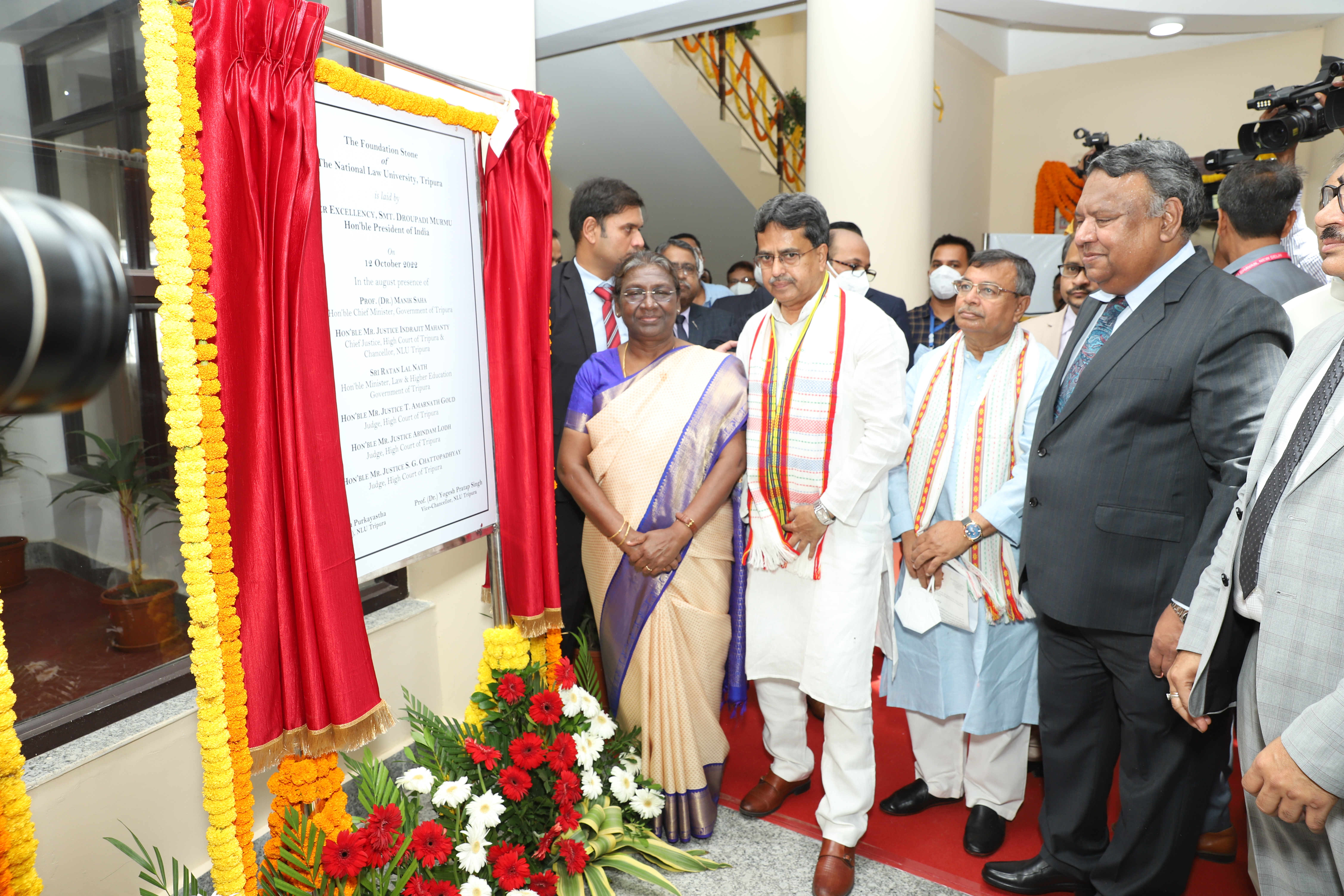 The foundation stone has been laid for the country's youngest National Law University at Tripura, Agartala by Her Excellency Smt. Droupadi Murmu, Hon'ble President of India. NLU Tripura will be the country's 25th National Law University, adding to the 23rd member of the Consortium of NLUS. Hon'ble Chief Minister of Tripura Prof (Dr.) Manik Saha, Hon'ble Justice Indrajit Mahanty, Chief Justice of Tripura and Chancellor of NLU Tripura, Shri Ratan Nath Lal, Hon'ble Minister of Law and Higher Education, Prof. Yogesh Pratap Singh, Founding Vice-Chancellor and other sitting judges of the Tripura High Court, former chief justices and judges of the High Court, senior members of the bar, senior officials of state administration were also present on this occasion.