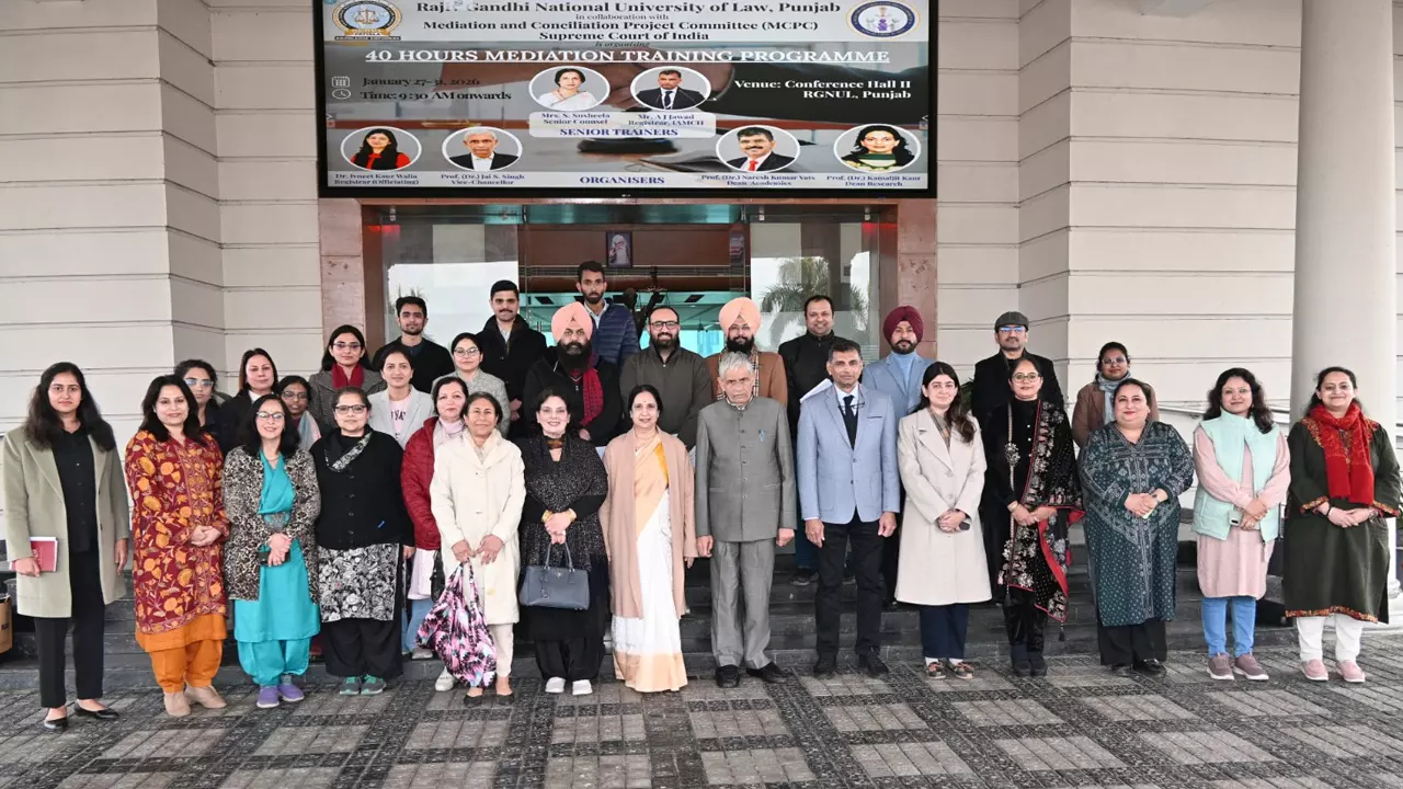 The Rajiv Gandhi National University of Law (RGNUL), Punjab, in collaboration with the Mediation and Conciliation Project Committee (MCPC) of the Supreme Court of India, successfully organised a 40-hour Mediation Training Programme from January 27 to January 31, 2026.