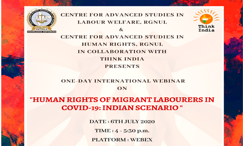 Centre for Advanced Studies in Labour Welfare (CASLW) and Centre for Advanced Studies in Human Rights (CASIHR), Rajiv Gandhi National University of Law, Punjab (RGNUL) in collaboration with Think India, are organizing an international webinar on the rights of migrant labourers.