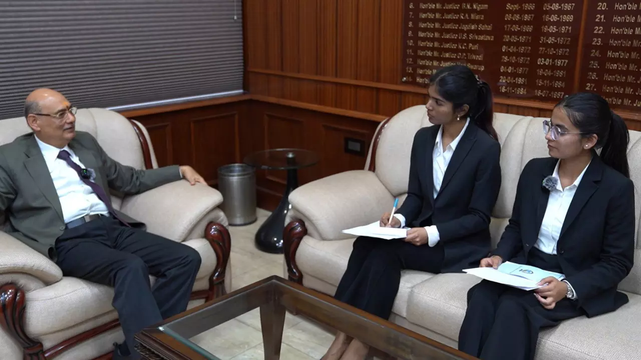 Dr. Rajendra Prasad National Law University, Prayagraj had the privilege of interacting with Justice Rajan Roy, Senior Judge at the Lucknow Bench of the Allahabad High Court, as part of its flagship initiative 'Beyond Judgments'. Under the inspiring guidance of Vice-Chancellor Sr. Prof. (Dr.) Usha Tandon, students Ms. Tejaswi Sharma and Ms. Soundarya Awasthi interacted withhim, while the event was recorded by Mr. Kaustubh.