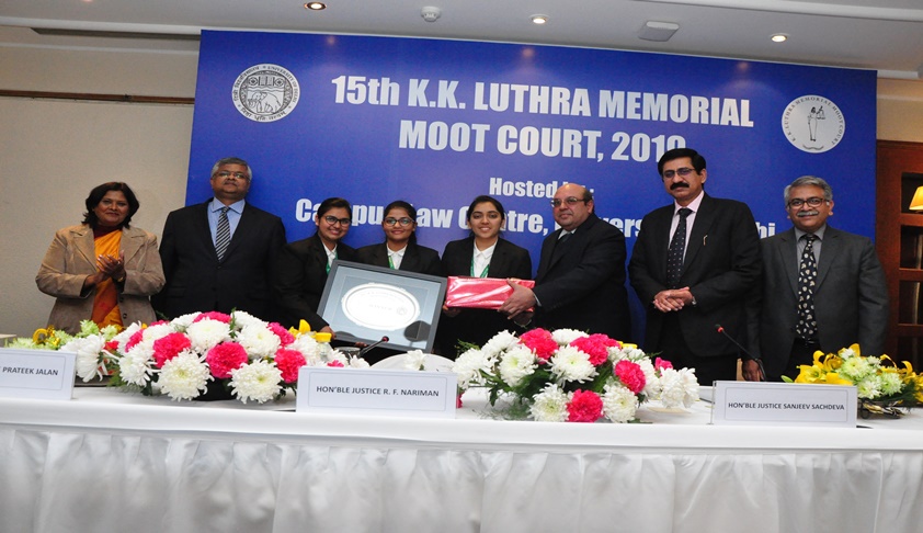 The final round of 15th KK Luthra Memorial Moot Court Competition concluded at India Habitat Centre, New Delhi, on Sunday. Justice RF Nariman, judge, Supreme Court, was the Chief Guest and Justice Sanjeev Sachdeva, Justice Prateek Jalan and Justice Manoj Kumar Ohri of the Delhi High Court were the Guests of Honour at the prize distribution ceremony.
