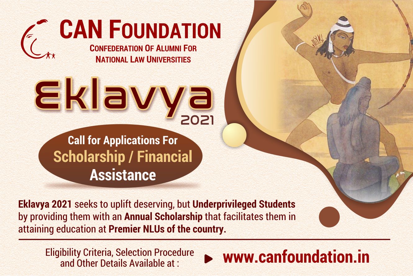 Confederation of Alumni for National Law Universities (CAN) Foundation has released a call for applications under one of its flagship projects, Project Eklavya, for its 3rd edition, Eklavya 2021.