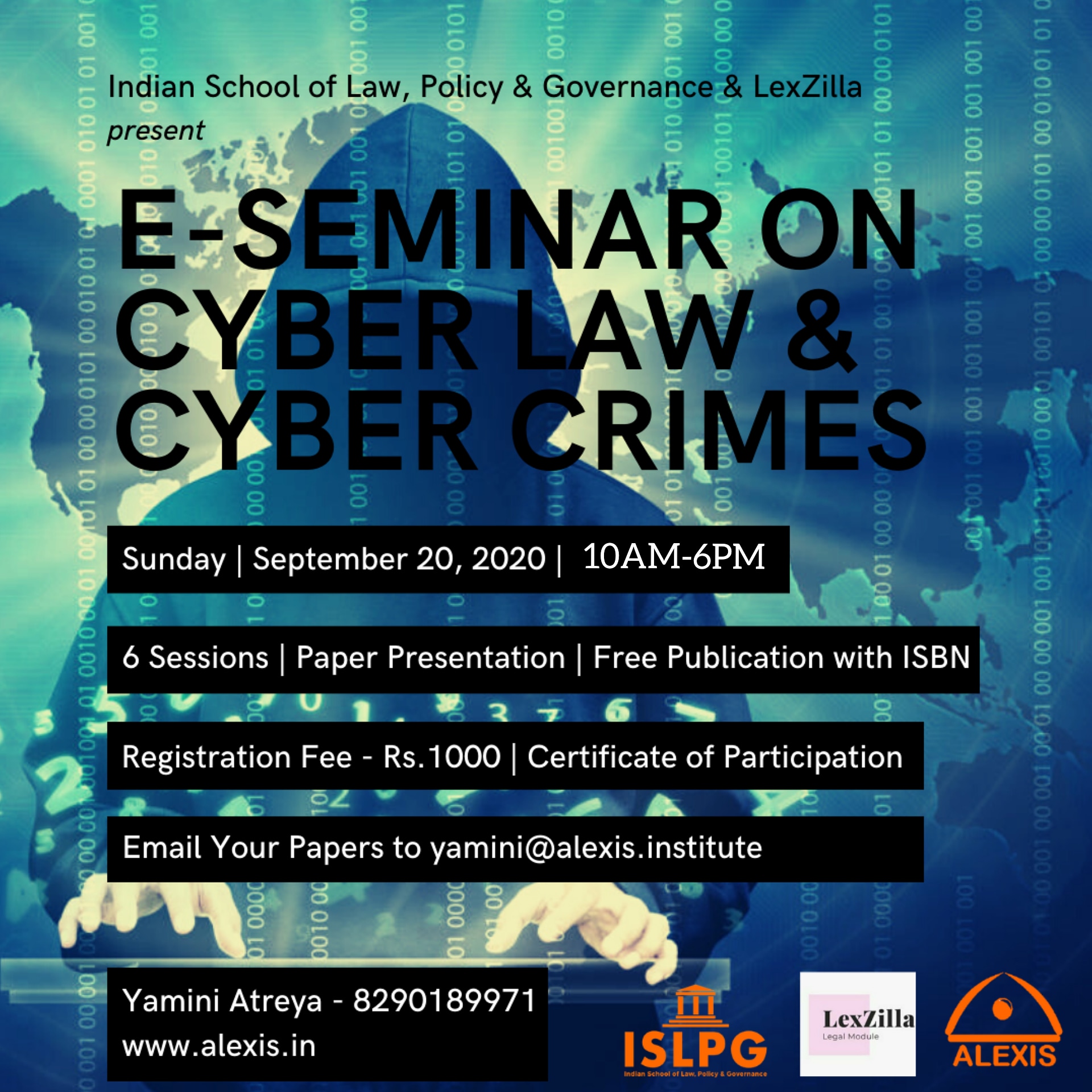 Indian School Of Law, Policy And Governance Presents National E-Seminar On Cyber Law And Cyber Crimes In Association With LexZilla