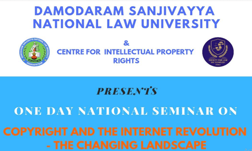 Society for Law and Technology & Centre for Intellectual Property Rights, Damodaram Sanjivayya National Law University is organizing one day National Seminar on "Copyright and the Internet revolution – The Changing Landscape" to be held on 10.08.2019.