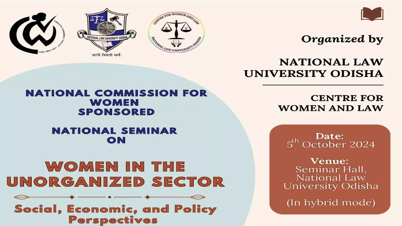 Centre for Women and Law, National Law University, Odisha invites researchers, academicians, students, practitioners, social and women activists to submit research papers based on original research or review papers related to the theme of the seminar. The broad theme of the seminar is: "Women in the Unorganized Sector: Social, Economic, and Policy Perspectives" . Appreciation certificates will be awarded for the Best Paper presented based on presentation as well as quality of the paper.