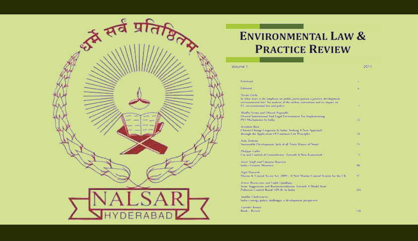 NALSAR University of Law, Hyderabad (NALSAR) has invited entries for the 3rd Volume of the Environmental Law and Practice Review (ELPR). Environmental Law and Practice Review (ELPR) is a journal published annually by the NALSAR and is part of its ongoing endeavor. Following two successful issues of the Journal, in continuance of the effort to encourage academic discourse and legal literature in the field of Environmental law, the Board of Editors (2013-14) of ELPR now invite submissions for the third volume of the issue.