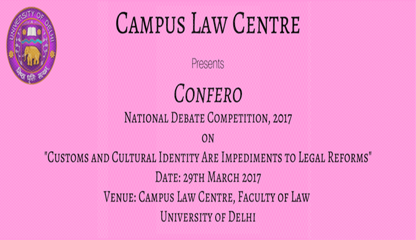 Campus Law Centre’s Seminars, Debates and Discussions Society (SDS) brings to you its first-ever National Debate on the topic “Customs and Cultural Identity Are Impediments to Legal Reforms” on 29th March, 2017. This debate exemplifies the constant endeavor of the nearly century old institution to provide a platform for diverse views on contemporary social and legal issues, helping to understand society and its evolution, thereby maintaining the spirit of dynamism.