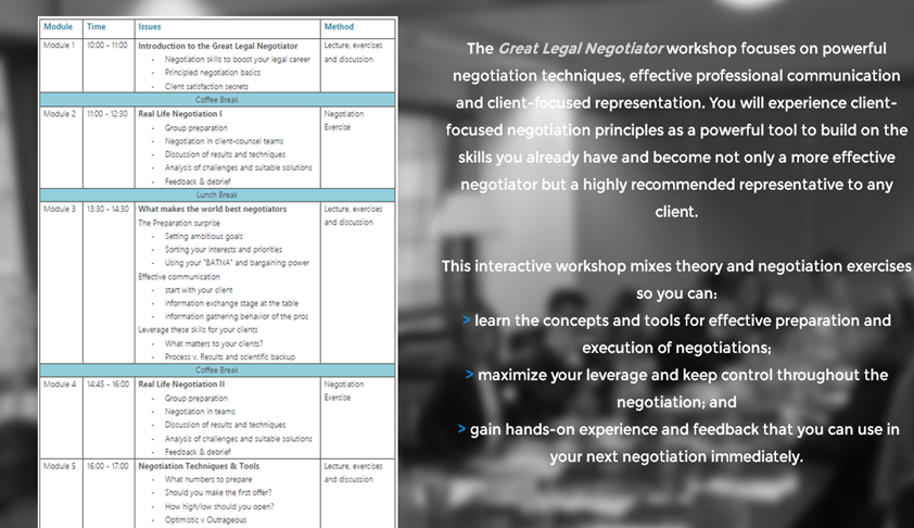 The Workshop will be certified for law and non-law students interested in honing their negotiation skills to leverage their career.