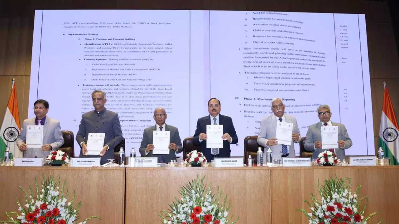 The initiatives were unveiled under the guidance of Mr. Justice Surya Kant, Chief Justice of India & Patron-in-Chief, NALSA, in the presence of Mr. Justice P. V. Sanjay Kumar, Judge, Supreme Court of India; Mr. Justice Devendra Kumar Upadhyaya, Chief Justice, High Court of Delhi & Patron-in-Chief, DSLSA; Mr. Justice V. Kameswar Rao, Judge, High Court of Delhi & Executive Chairman, DSLSA; Mr. Justice Nitin Wasudeo Sambre, Judge, High Court of Delhi; Mr. Chetan Sharma, Additional Solicitor General of India; and Mr. N. Hariharan, President, Delhi High Court Bar Association.