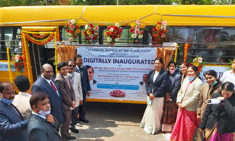 Chief Justice of the Telangana, Justice RS Chauhan on Monday inaugurated the "Mobile Video Conference Facility" to assist appearance of lawyers situated in remote locations, in the video conference hearings before Court. "In order to facilitate Advocates, who do not have access to the Virtual Courts from their respective home offices the concept of Mobile Video Conference Facility...