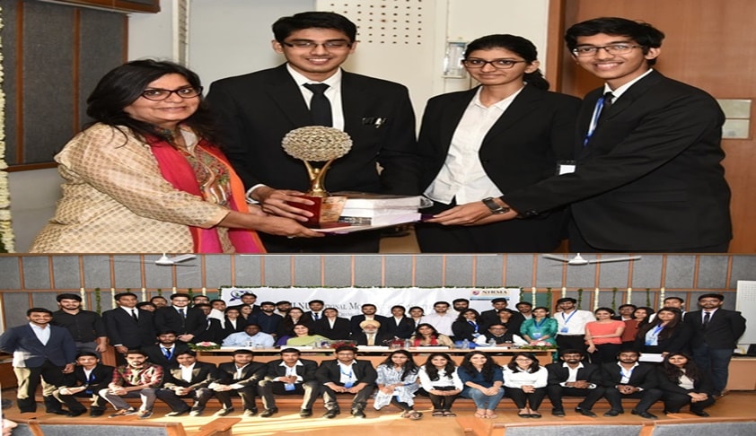 The valedictory session of the competition was graced by the presence of Shri K.T.S. Tulsi, Senior Advocate; Ms Geeta Luthra, Senior Advocate; Prof. (Dr.) Purvi Pokhariyal, Director and Dean, Institute of Law, Nirma University; Dr. Tarkesh Molia, Academic Coordinator, ILNU, and Mr. U. Varadharajan, Faculty Coordinator, Moot Court Organizing Committee.