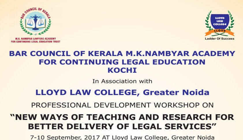 Bar Council of Kerala, MK Nambyar Academy for Continuing Legal Education, Kochi in Association with Lloyd Law College, Greater Noida is organizing a Professional Development Workshop on “New Ways of Teaching and Research for Better Delivery of Legal Services”.