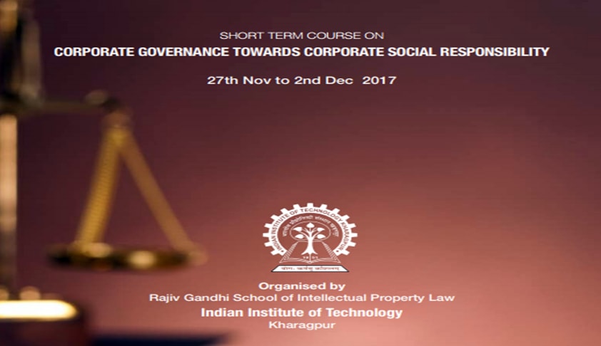 Short Term Course on Corporate Governance towards Corporate Social Responsibility being organized by Rajiv Gandhi School of Intellectual Property Law, Indian Institute of Technology, Kharagpur, India.