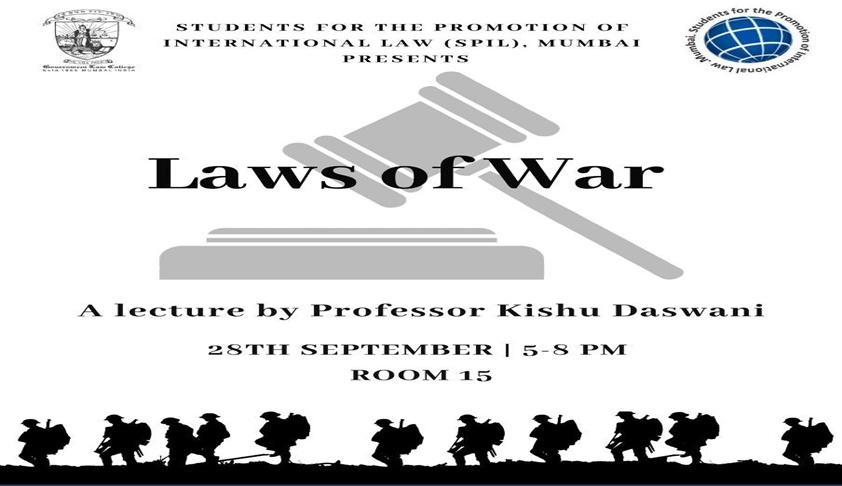 The Students for the Promotion of International Law (SPIL), Mumbai, will hold a lecture on Laws of War by Prof. Kishu Daswani on Friday evening at Government Law College, Mumbai.