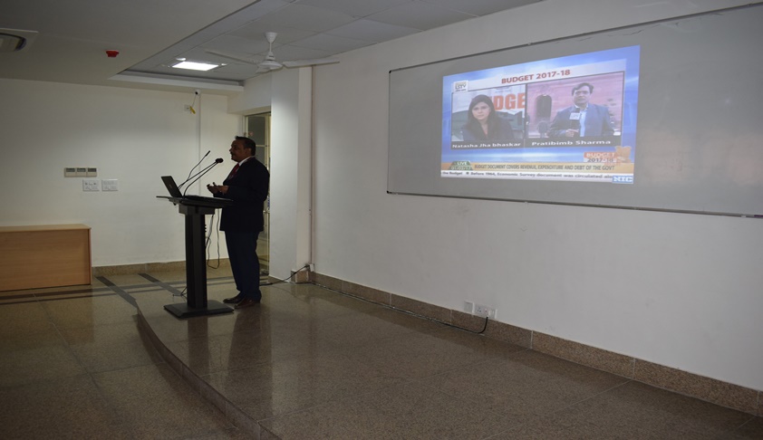 The prelude to this was a seminar on Pre Budgets held on 24th of January 2017. The session started with a speech of Mr. Rajiv Gupta (Assistant Professor, Finance) who highlighted the key points which students should concentrate specifically to understand the Budget-2017 well and connect them with their curriculum especially with subjects like Tax Economics. He discussed the reason for presenting the budget on 1st February instead of March this year.