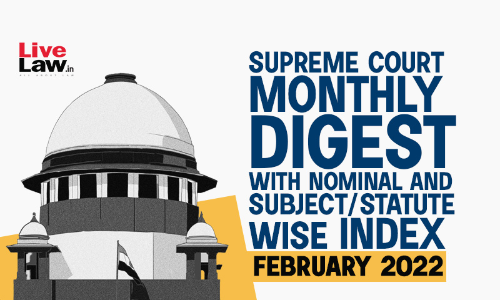 Supreme Court Monthly Digest February 2022 With Nominal And Subject/Statute Wise Index