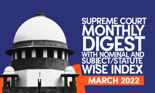 Supreme Court Monthly Digest With Nominal and Subject/Statute Wise Index- March 2022