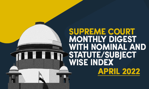 Supreme Court Monthly Digest- April 2022 With Nominal And Statute/Subject Wise Index
