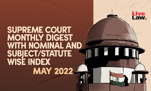 Supreme Court Monthly Digest- May 2022 With Nominal And Statute/Subject Wise Index