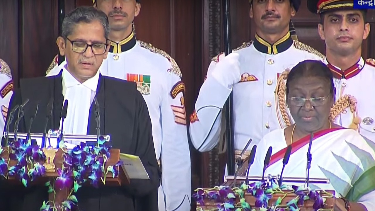 Droupadi Murmu was sworn-in as the 15th President of India on Monday by the Chief Justice of India NV Ramana.The CJI administered the oath of office to Droupadi Murmu at the Central Hall of the Parliament in New Delhi tomorrow at 10.15 AM.Murmu, 64, was declared the winner of the Presidential elections on July 21 after defeating opposition presidential candidate Yashwant Sinha to become the...