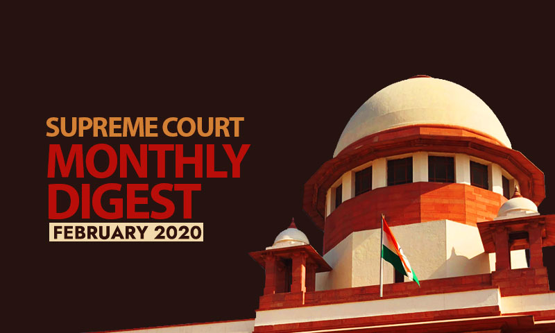 Here is a compilation of major Supreme Court decisions of February, 2020.SC Upholds MP Amendment Which Restored Power To Try Labour Law Offences On Criminal Courts.The Supreme Court upheld the Madhya Pradesh Labour Laws (Amendment) and Misc. Provisions Act, 2002, which restored the power to try offences under labour laws on the regular Criminal Courts.(Case name: State of MP vs....
