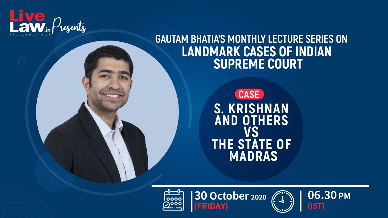 LiveLaw presents another episode of the Gautam Bhatia's Lecture Series On Landmark Cases Of Indian Supreme Court, Episode [3] S Krishnan & Others v State of Madras.Gautam Bhatia graduated from the National Law School of India University in 2011. He read for the BCL and the MPhil at the University of Oxford, on a Rhodes Scholarship, and for an LLM at the Yale Law School. He practiced law...